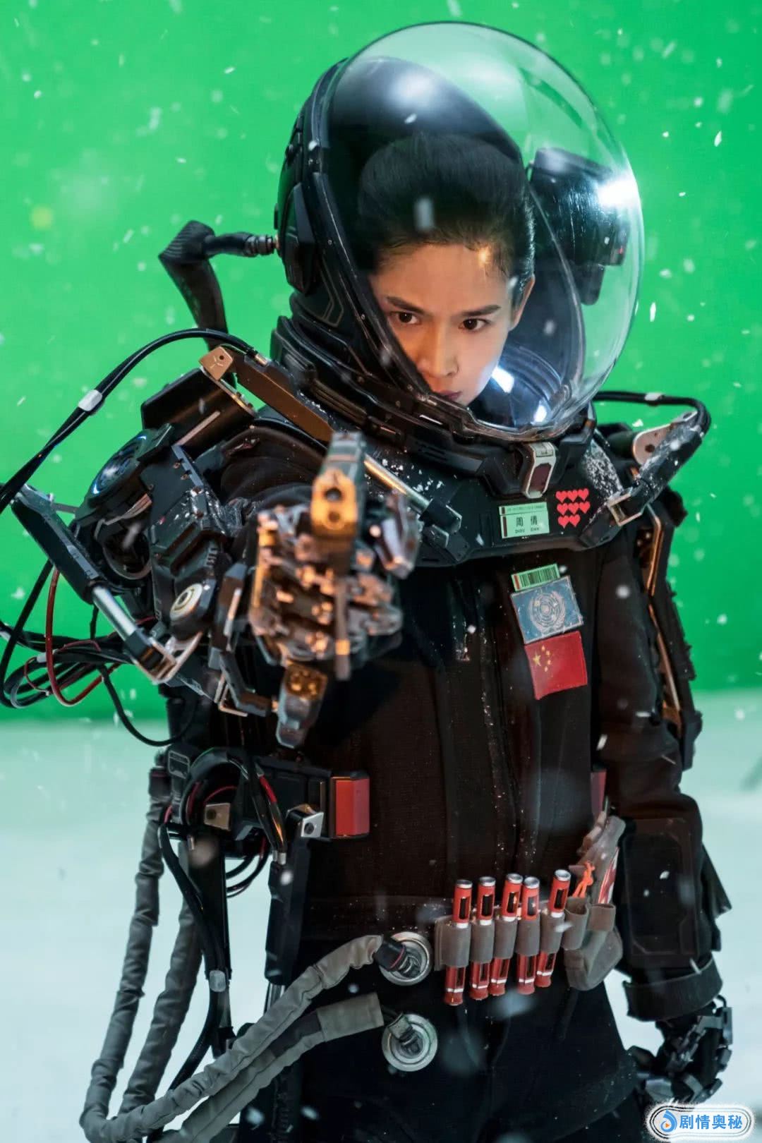 在整部影片里,搜救队员们一直处于任务状态,周倩大部分的戏份都是以全身机甲、头戴太空头盔的“女战士”形象出现,人物的性格塑造很大程度上依赖于肢体语言。不管是与队友护卫火石的日常,还是奔跑救援,屈菁菁全程身手矫健而帅气十足。据悉,她的造型重达70多斤,而头盔又会导致呼吸困难,就连男演员也常常一条拍摄下来需要紧急吸氧,然而这样高强度体力消耗的拍摄条件下,屈菁菁依然用利落而干练的肢体语言表现出了角色独立、坚强和军人骨子里硬朗的一面。
