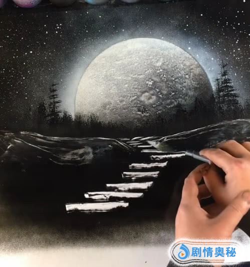对于黑和白这两种颜色,相信大家都是非常清楚的,这两种颜色用在画里面也是非常漂亮的,她将黑色颜料和白色颜料语音也弄到一张纸上,画成了一幅非常漂亮的作品,晚上的夜光,黑色的树和森林,还有泛着光的青石台阶,真的是非常的漂亮。