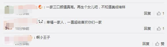 对此一幕,网友也纷纷留言:“幸福一家人,一直超级喜欢你们一家”、“一家三口颜值真高,再生个女儿吧,不知道美成啥样。”