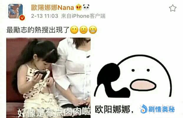 估计欧阳娜娜也没想到自己有一天会因为胖而上热搜吧,也是十分耿直的回应"最励志的热搜出现了",而且还特地放了两张非常可爱的表情包,不得不说小时候的欧阳娜娜真的是非常可爱了呀,圆嘟嘟的小脸真的非常想让人捏一下呀,而且欧阳娜娜在评论中回复道谁知道有生之年竟然还会因为胖而上热搜,连杨天真都回复说"真的不关我的事",哈哈哈看来大家都十分关注娜娜的一举一动了啊。