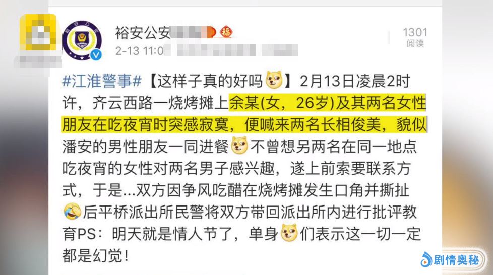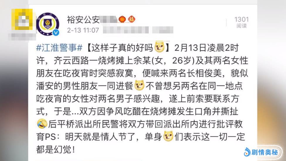 此次事件在网上一经发布,网友们就开水坐不住了。纷纷讨论起那名应约的男性友人的长相,就连当地公安局在官博报道此事件用来形容该男性朋友的词都是貌若潘安。可见这名男子的长相,应该非同一般。可网友对此却评论道:“不公开脸的,一律当宋小宝处置。”;“见过男生为女生打架的,却从未见过女生为男生打架的,这男的是有多帅?”;“想看看那人的照片,难道真的帅到进局子?”等等评论。