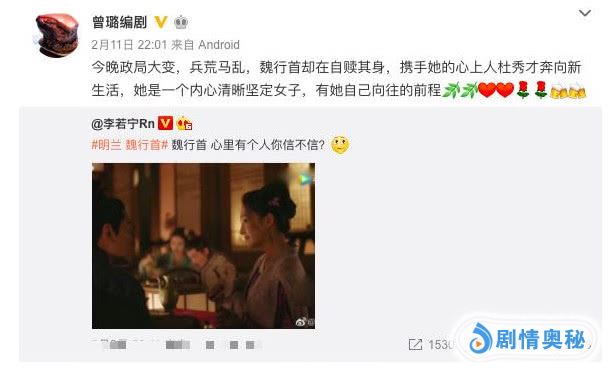 临近大结局有一个角色的表现非常的诡异,就是花絮说提到顾廷烨的红颜知己魏行首,虽然风尘出身但是出淤泥而不染,最近正值宫变,她却在深夜为自己赎身,带着心上人独秀才逃亡,让大家很怀疑这个角色的真伪,有人说她是太后的内应,事情败露后慌忙逃跑,说的也挺有道理。