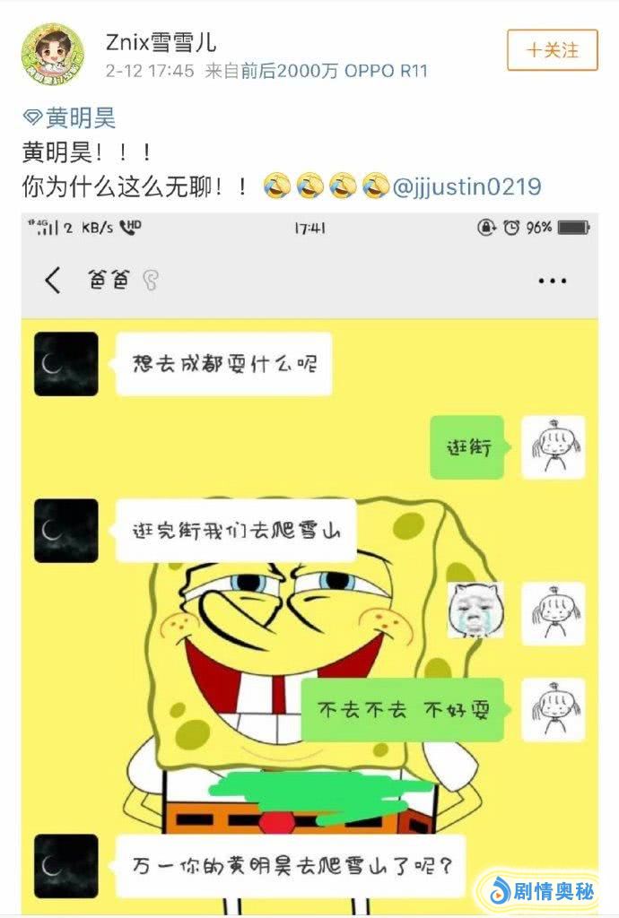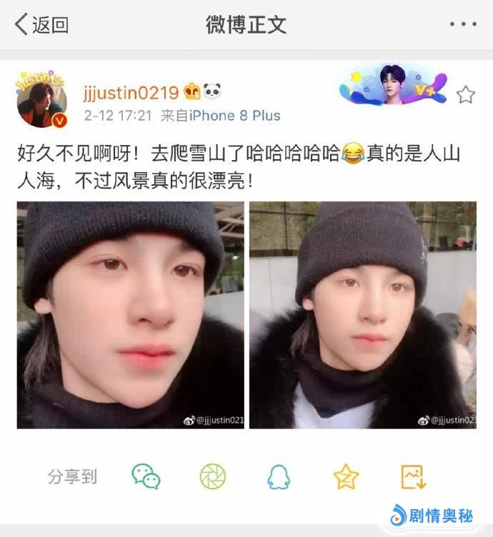 某位粉丝有机会偶遇justin但是却被自己的判断错过了,这位网友发微博晒出了与其老爸的聊天纪录,这位老爸问是否逛完街爬雪山,却被这位网友否决了,认为黄明昊才不会这么无聊得。结果这位粉丝被”打脸“了,justin黄明昊真的去爬了雪山而且还晒出了两张久违的自拍照。让这位粉丝懊悔不已,随即这位粉丝就说黄明昊你为什么这么无聊。