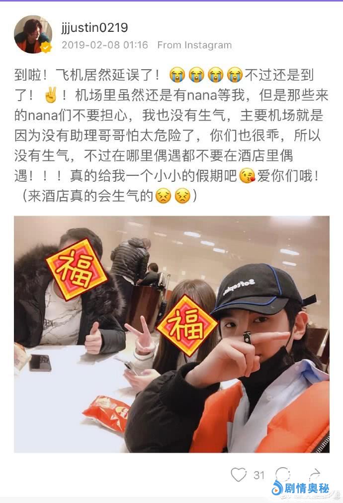 消失好几天的黄明昊终于发微博了,过年这几天忙碌了一整年的他终于能够好好休息了。这次过年休假justin就选择去成都旅游,他在放假前就在ins上说希望粉丝们春节期间就不要跟拍了,如果遇见也不要拍照了,希望能给自己和家人一个相处的时间。