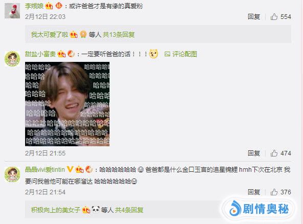 粉丝调侃道:“爸爸都是什么金口玉言的追星锦鲤 hmh下次在北京 我要问我爸他可能在哪溜达 哈哈哈哈哈哈”、“或许爸爸才是有缘的真爱粉”、“笑死,黄明昊一定是摸透了粉丝的心,料定粉丝不回去”、“黄明昊果然是成熟男人,跟爸爸辈的业余活动相似啊,爬山游湖”。就像justin说的,虽然他的年纪在队里是最小的,但是他的心智确是最成熟的,还要时不时地照顾哥哥们。