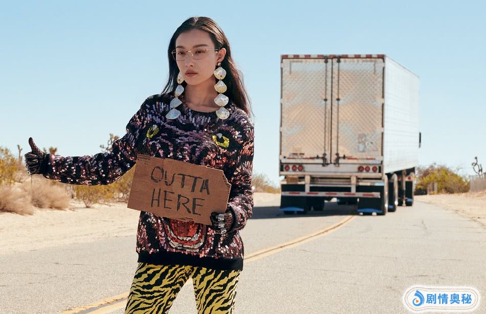 新浪娱乐讯 倪妮现身沙漠上演公路大片。炎热正午,在空旷的沙漠公路,倪妮手举纸板开启洒脱之旅。色彩张扬的服装配饰和个性鲜明的形象令人过目难忘。