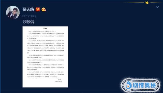 在道歉信中,翟天临称因自己的不当行为让学校声誉和学术风气受到影响,愿配合学校的一切调查,同时向光华管理学院提出正式申请退出北京大学博士后科研流动站的相关工作。不过对于翟天临的道歉,不少网友还是选择不原谅,并称“造假一身黑”。几乎是和翟天临发布道歉信的同时,北京电影学院就该事发布说明,称对于网友反映的其他问题,也已启动调查。