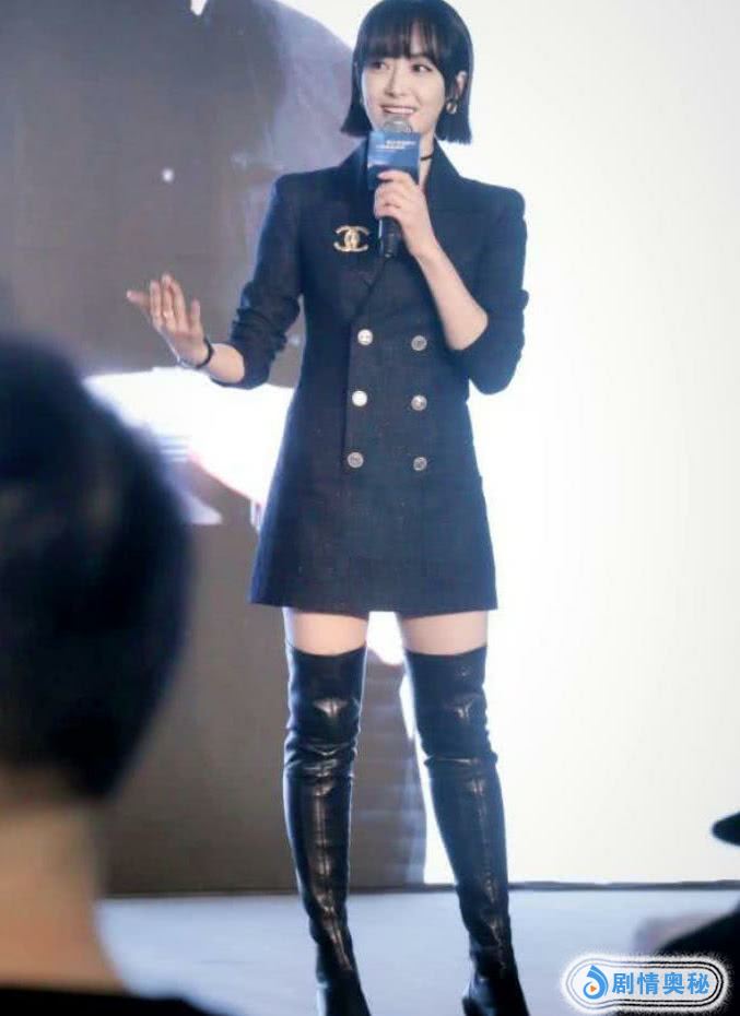不过大家还是被她的鞋子吸引住了目光,这是一双黑色皮质的长筒靴,或许是常年练舞的原因她的身材高挑又纤细,但同时也不会显得过于纤瘦而显得不健康。