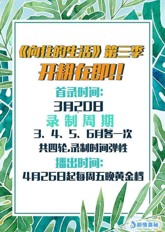熟悉几位嘉宾的观众都知道,黄磊和何炅都是《暗恋桃花源》的演员,所以还是非常有可能的。这档节目《向往的生活3》录制时间定在3月20日,之后共进行四轮,录制时间弹性,而播出的时间定档在2019年4月26日周五晚黄金档。