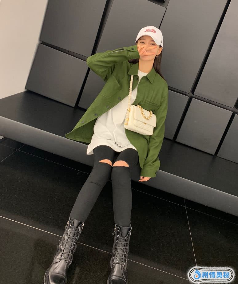 沈梦辰搭配了一条黑色的破洞裤,她的裤子是破洞的设计,所以超级性感,搭配了一双黑色的马丁靴,显得又比较气质,她这样的打扮十分优雅,整体看上去很活泼,难怪征服海涛7年!