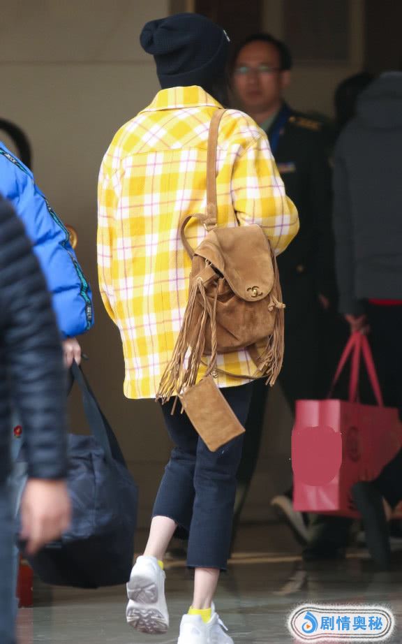 杨幂穿了青春得像去上学,她搭配了一件黄色的格子外套,显得超有气色的,这件格子外套很好看,显得她很嫩,搭配了一条黑色休闲裤,她的身材真瘦啊,穿着这样的衣服简单大方。