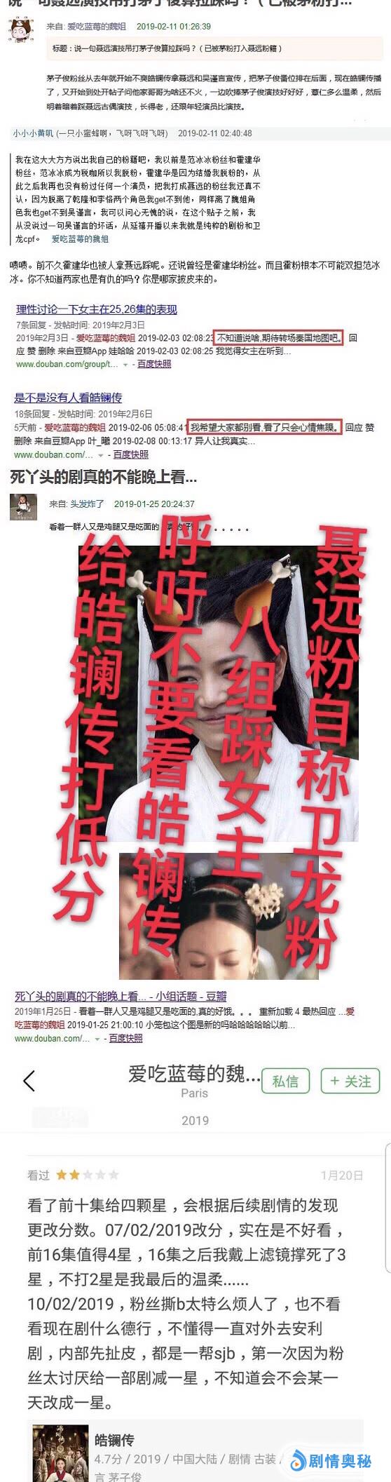 《皓镧传》这部剧也已经播出到了,这部剧怎么说呢,也不知道是有没有扑,如果说没有扑,前段时间《知否》在播出的时候,这部剧几乎没有多少讨论度和热度。如果要说扑了的话,好像在数据方面却也不是这个样子的,所以说,也就那样吧,反正不是特别的火,也没有扑的很彻底就是了。但是,最近据说这部剧的主角粉丝们就起了一些冲突了,而且,有一些过分。
