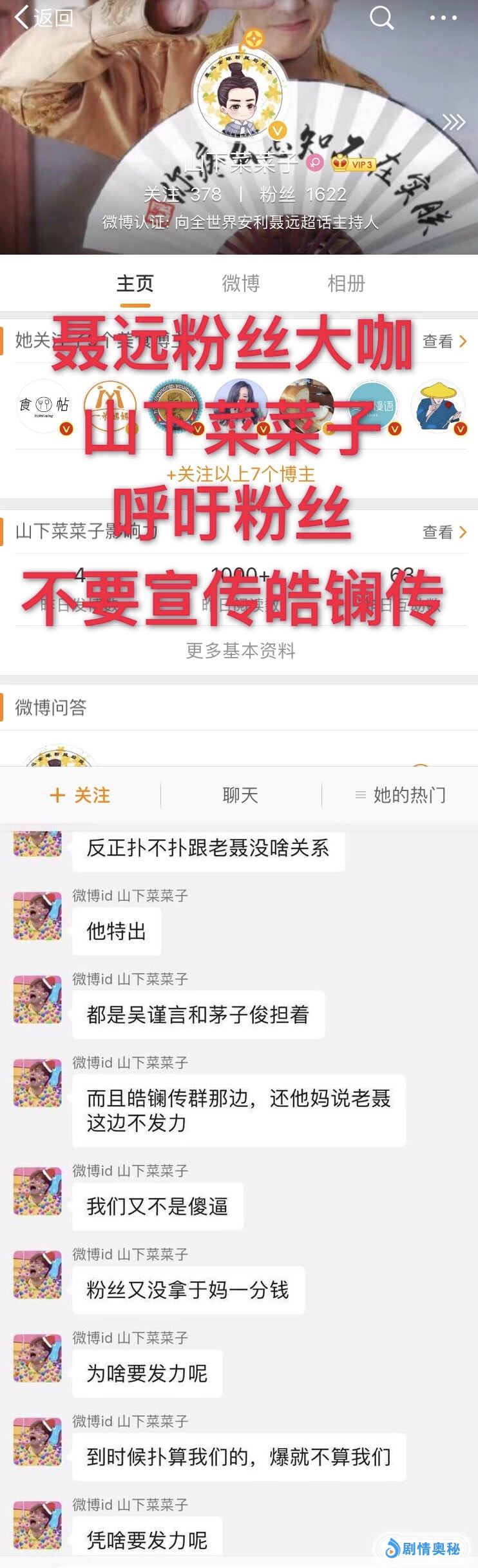 听说是聂远的大粉在微博群中呼吁大家说让大家不要去参与《皓镧传》的宣传,说这部剧最后扑街了是要算男女主角的,就算播的好的话,没有扑街那也是算男女主角的,和聂远没有什么太大的关系。甚至还听说之前还呼吁了粉丝去豆瓣打低分,总而言之,这种操作有点奇葩,自己家的爱豆在剧中是男二号啊。