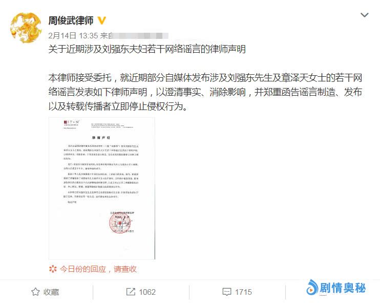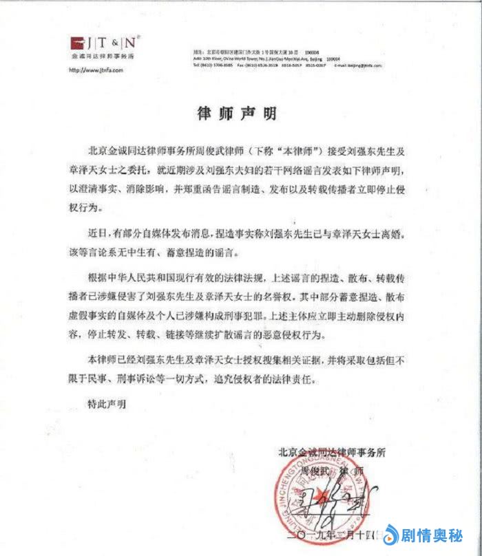 刘强东章泽天离婚?权威律师晒出声明,道出真实情,对此你有什么看法?欢迎留言!