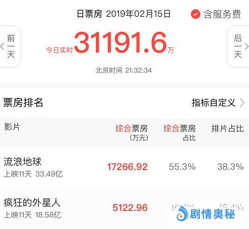下面我们从两个方面对比《流浪地球》和《新喜剧之王》,我们先看两部贺岁片的票房成绩,本周五是这两部贺岁片上映的第11天,哪部电影更受观众欢迎,电影票房给我们答案。