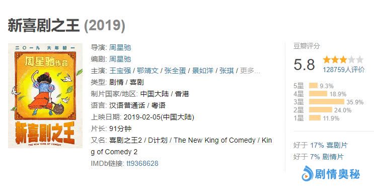 我们再看《新喜剧之王》的口碑,截止小编发文时间,《新喜剧之王》豆瓣评分仅有不及格的5.8分,该片差评率超过35%,综合口碑低于93%的剧情片,且低于83%的喜剧片。综合票房和豆瓣评分,我们可以说《流浪地球》口碑票房远超周星驰贺岁片,最后小编想问问大家,《流浪地球》和《新喜剧之王》,你选谁?