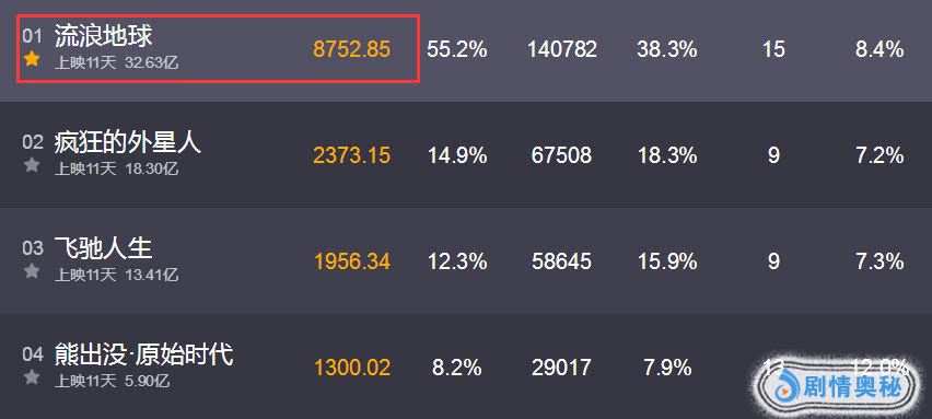 今年的春节档可谓是“神仙打架”吴京、沈腾、周星驰还有黄渤都来了,不过今年的春节档成为了“中国科幻大片元年”,吴京的《流浪地球》口碑票房双丰收反超了《疯狂的外星人》领跑春节档冠军,如今上映了11天票房已经突破了31亿,其票房增长速度不输于《战狼2》,而电影院也预测了《流浪地球》的最终票房或将有51亿。《流浪地球》作为国产科幻大片的鼻祖赢得网友们的认可。