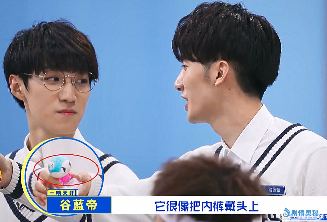 在即将播出的《青春艺能学院》中,每个人都以豆仔为原型,DIY自己的样子。王奕拿出自己的作品,谷蓝帝笑他的作品像把内裤戴在头上,却遭到王奕的霸气反击,跟大家介绍那是谷蓝帝,听得谷蓝帝本人一脸懵。
