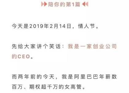 2月14日,一篇文章《那个从阿里离职的漂亮女高管,从来不过情人节》在社交媒体上火了!文中女主人公王晗称从2008年到阿里巴巴任职,2017年夏天从阿里巴巴离职,近十年间,从未过情人节。还称这次从阿里离职期权损失至少超千万元。