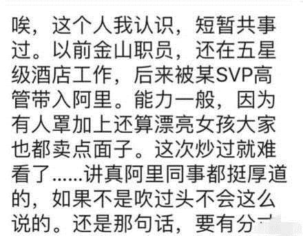 一位阿里巴巴资深员工称,“如果她的职位是高管,那公司里起码有上万高管了。”其实王晗确实在阿里工作过,只是能力不行,已经在4年前被淘汰掉!