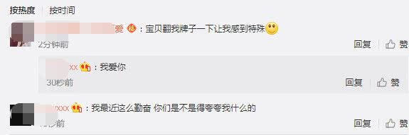 当然,心情大好的小苹果还不忘跑到评论区与网友互动,其中,对于一位网友:“宝贝翻我牌子一下让我感到特殊”的留言,小苹果也很是大方与其互动表白道:“我爱你”。而且,对于近日频繁更新微博动态晒正脸照的小苹果,她也喊话粉丝们表示:“我最近这么勤奋,你们是不是得夸夸我什么的。”