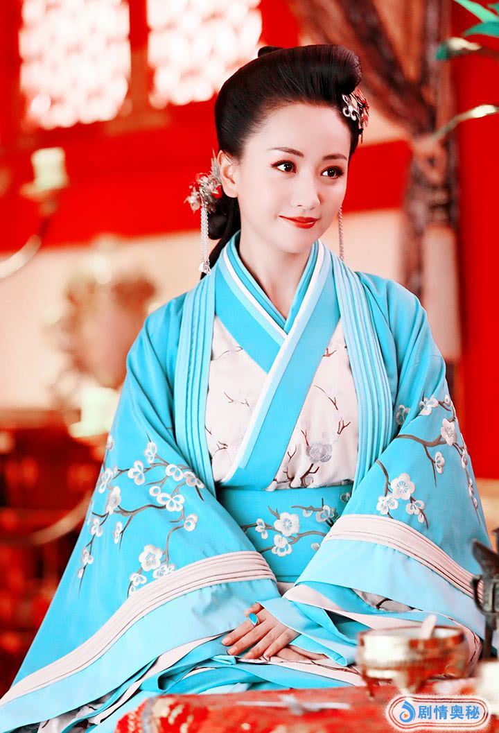 杨蓉的花朵裙,以蓝色为主,白色为辅,白色的寒梅绽放在她的衣袖和腰带上,给人以最最清冷高雅的意境,论古装气质,霍成君堪称上乘。