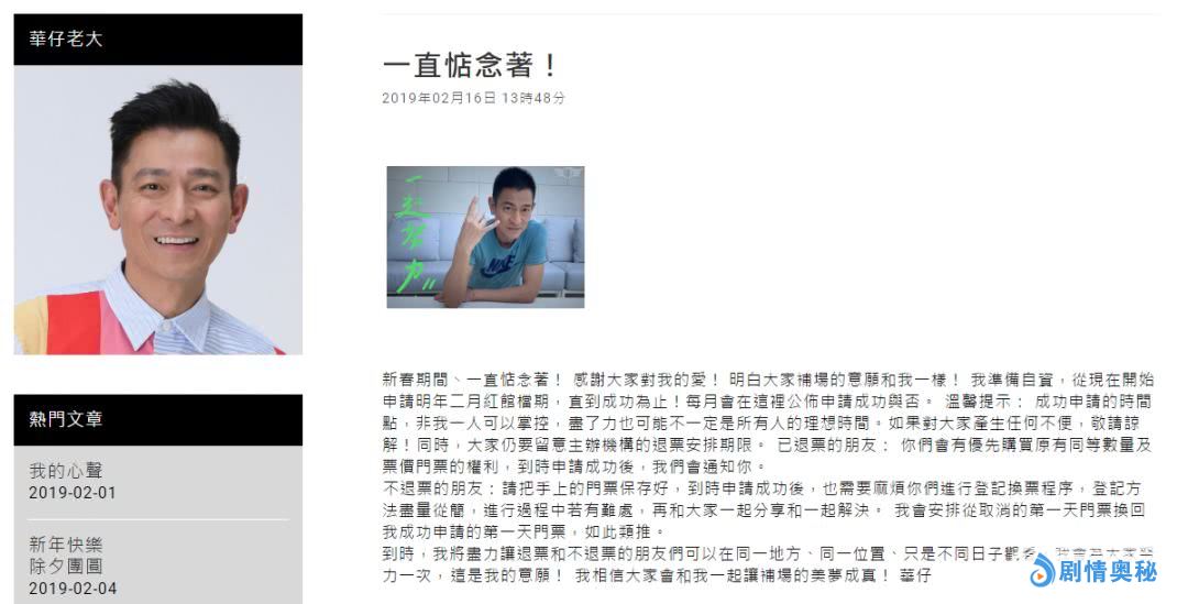 值得一提的是,即使是之前已经退票的观众,也有优先的购买权利,而且刘德华承诺将尽量安排观众选回原来的位置跟场次,只是时间上往后移了一些!