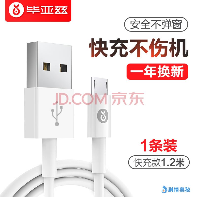 毕亚兹 安卓数据线 手机充电线 2A快充Micro USB充电器线 1.2米 支持华为小米vivo/oppo红米三星魅族 K5白色