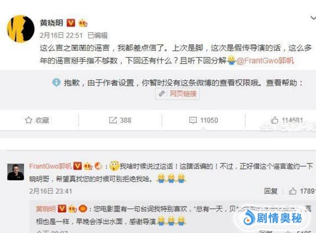 对于此事的传言,但是如今估计本人也是看不下去了,也做出了回复,大意就是指这件事是假的不存在的。也等着看下次传出什么样的离谱的事情。而郭帆导演本人也有去帮他澄清,大概意思就是可以理解为,没有要求他出演刘培强。当然也希望以后如果真邀请了不要拒绝啊,小明也同样在下面回应。