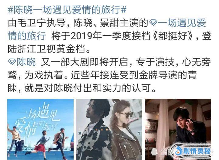不仅如此,之前陈晓和孙俪合作的《那年花开月正圆》获得很高的口碑,也是让他成功转型为实力派演员。而据悉,目前陈晓和景甜合作主演的一部新剧《一场遇见爱情的旅行》已经定档了。