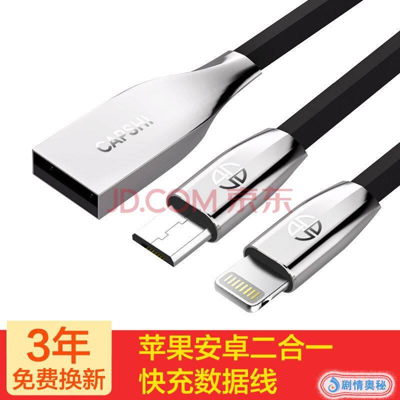 凯普世 苹果/安卓二合一数据线快充手机充电线1.2米黑 适用iphoneXS/8/7三星小米红米Vivo华为oppo