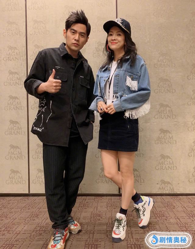 章子怡晒与周杰伦夫妇合照,牛仔褂配黑色小短裙超有活力,好美!