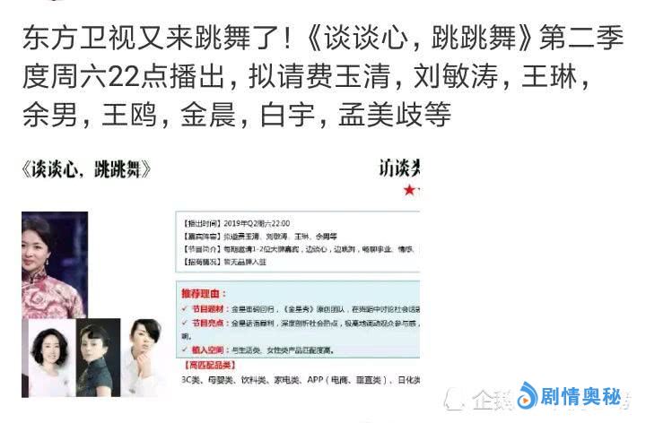 不过这档节目在2017年已经宣布停播了,也让不少喜欢的观众们感到遗憾。而据悉,目前由东方卫视打造的一档全新综艺《谈谈心跳跳舞》,已经官宣由金星担任主持了,这档节目可以说是将金星的两个优点融为一体了。
