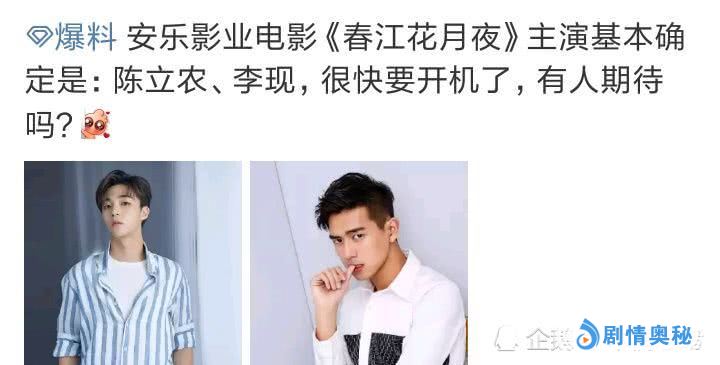 在节目当中的陈立农表现已经是比较突出的了,最终以第二名的成绩出道,成为炙手可热的当红小生。而据知情人士爆料,目前陈立农有一部新电影《春江花月夜》已经开机了,有网友也晒出了陈立农在现场看剧本的照片。