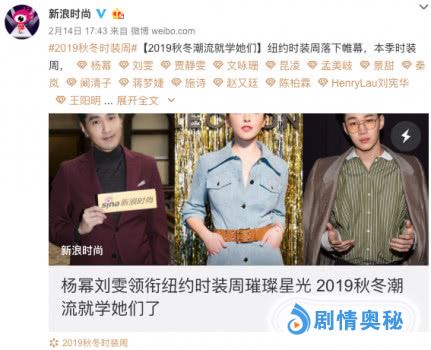 2月14日,2019秋冬纽约时装周落下帷幕,奚梦瑶、景甜、赵又廷、陈柏霖等18位华人明星纷纷亮相纽约,为本季时装周贡献了一场创意感十足的潮流盛宴。