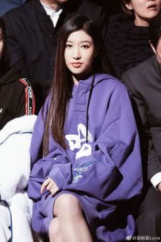 在机场,吴映香就以白色印花运动外套,搭配黑色复古腰包亮相,潮范儿不减。进入秀场内,吴映香身着紫色简约卫衣亮相,帅气又不失温柔的装扮,将女性的刚柔并济演绎的恰到好处。清新自然的披肩长发,服饰上彰显中国传统文化的图案为其加分不少,传统与时尚都自如切换。