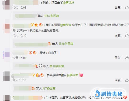 而这次蔡徐坤恢复了“自由身”,粉丝们第一时间发来贺电。蔡徐坤的微博评论区清一色的祝福语,很多粉丝表示:坤坤太不容易了,历时了547天才恢复自由身。之前一直被东家压榨,如今蔡徐坤终于能够扬眉吐气不再受到任何压迫。粉丝们也希望蔡徐坤能够无忧无虑的做音乐,给大家带来更好的作品。小编也希望蔡徐坤能够越来越红,让那些黑粉打脸。