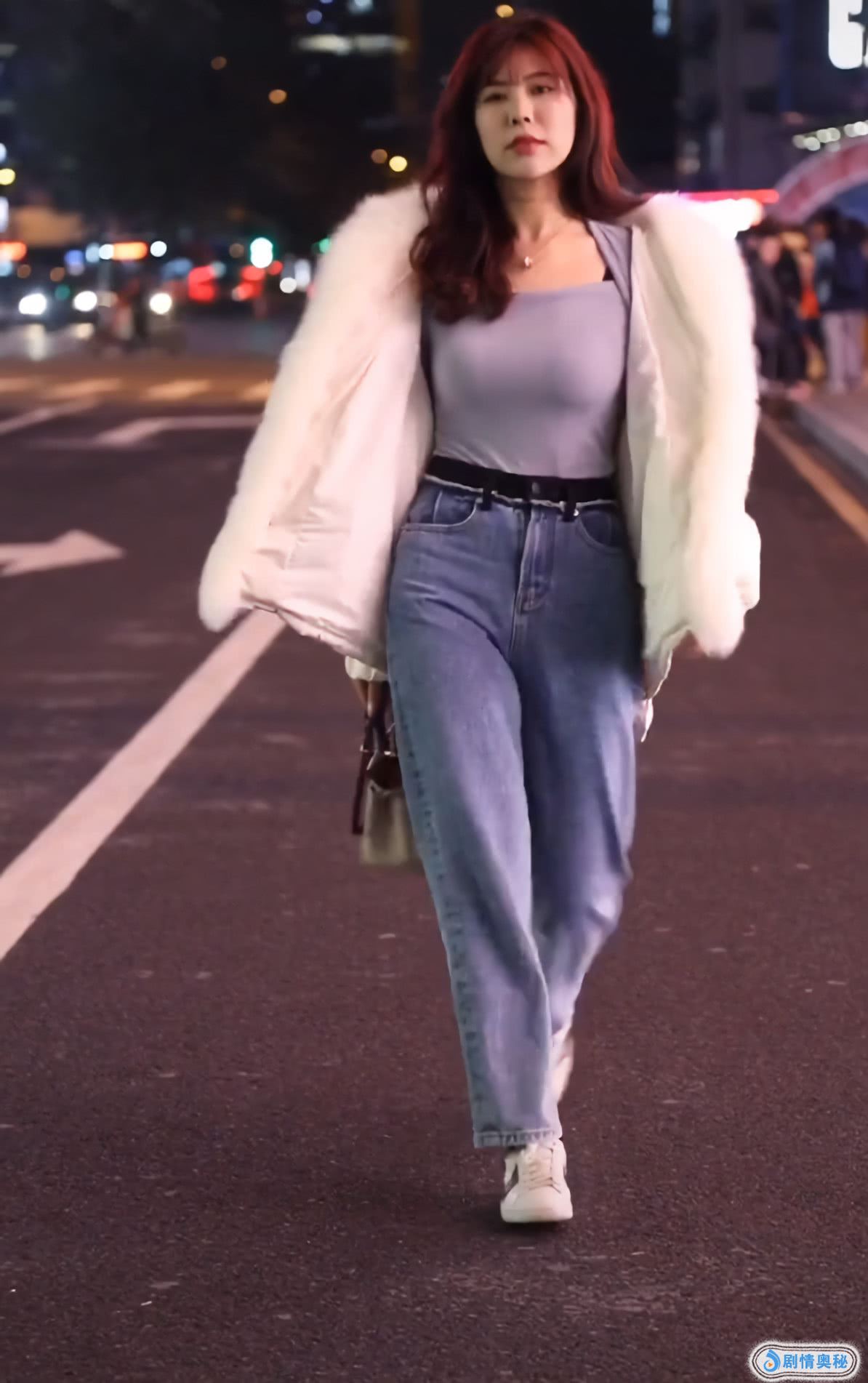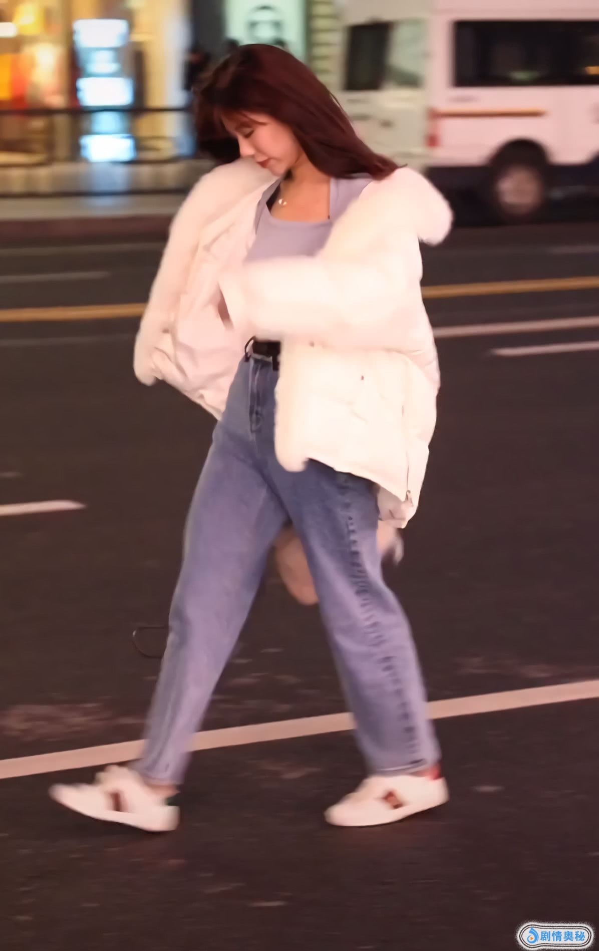 小姐姐的牛仔裤配小白鞋,优雅大方,外面穿了一件白色羽绒服,看着就更加好看了,她的羽绒服简单大方,还很修饰身材,搭配的是银色项链,增加了几分光泽感,看上去她的身材绝了。