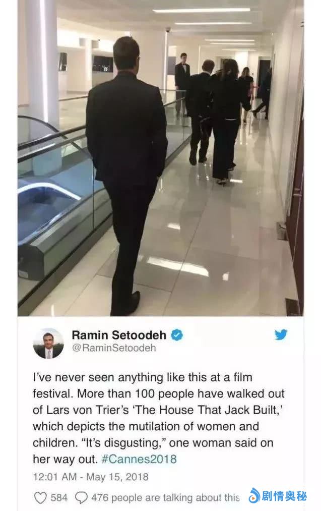 该片今年5月在第71届戛纳电影节放映过程中,超过一百人退场。