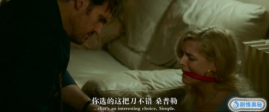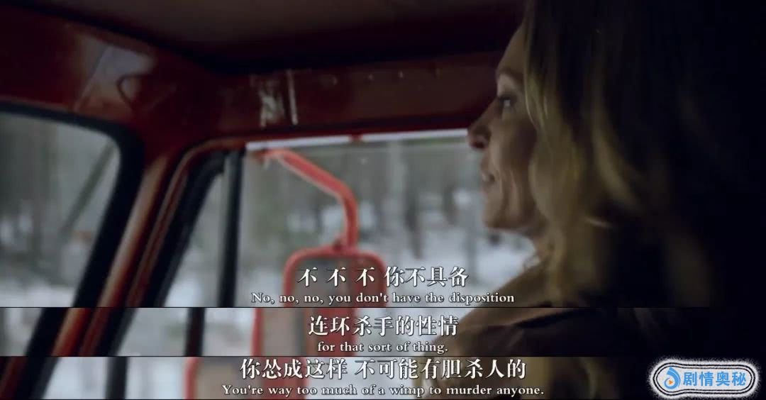 乌玛·瑟曼饰演的一号女子(没想到女神这么老了),搭乘杰克的车后,就开口怀疑杰克是连环杀手,甚至有些激将意味地讲话。