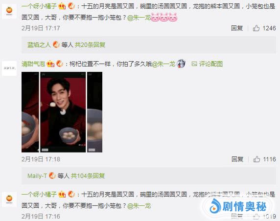 这样的画面,简直就像是女友视角下朱一龙喂小笼包吃汤圆的了。看到这样的龙哥,粉丝们当然是疯狂心动啦,都纷纷留言到:“我的天哪,哥哥喂我吃汤圆”、“拢龙元宵节快乐”、“火红枸杞,在线养生”……小笼包们不仅感叹朱一龙的高颜值,更是注意到了一些小细节。