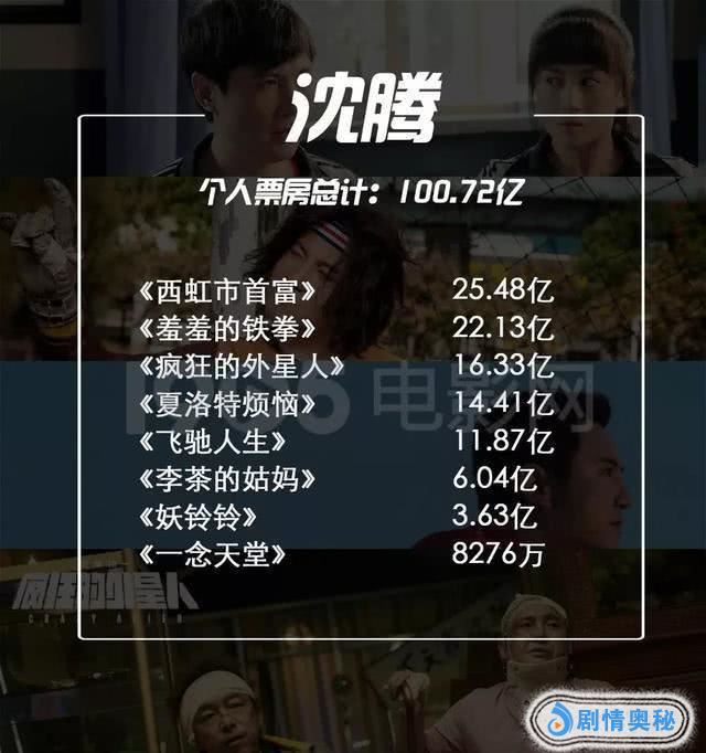 沈腾现在已经成为了网友最喜欢的一位喜剧演员,当年的一部《夏洛特烦恼》打开电影市场,在2015年红极一时,该片还取得当年国庆档冠军,票房累计14.42亿,位居2015年票房榜第五,如今沈腾主演的电影《飞驰人生》《疯狂的外星人》在春节档累计票房分别突破12.24亿、16.8亿,成功助力沈腾个人总票房突破100亿,排名中国票房男主角影人榜单第2名。