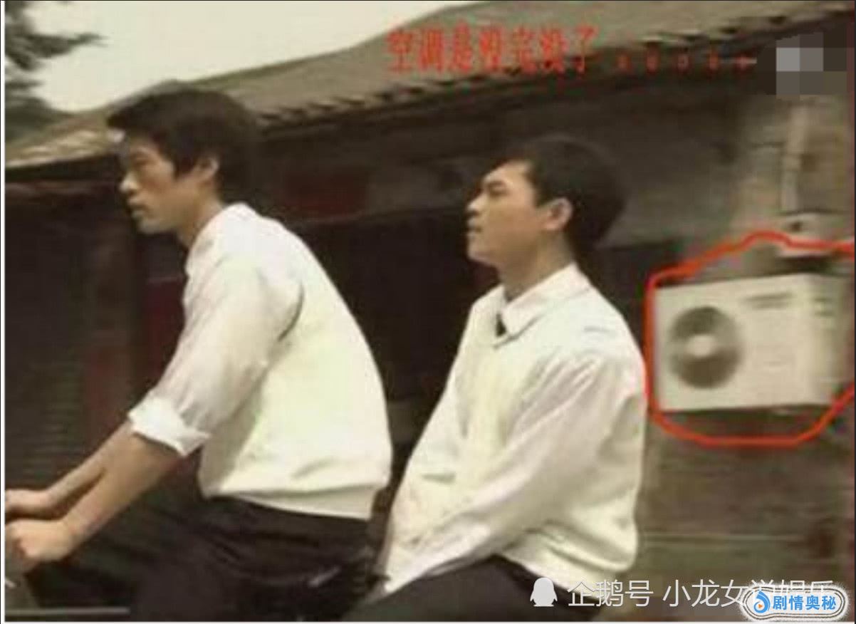 穿帮镜头二:李小龙骑着老式的自行车拖着伙伴,可是竟然被房子旁的空调抢镜了,导演,这那个时候,难道家里都用上了空调吗?真是太逗了。