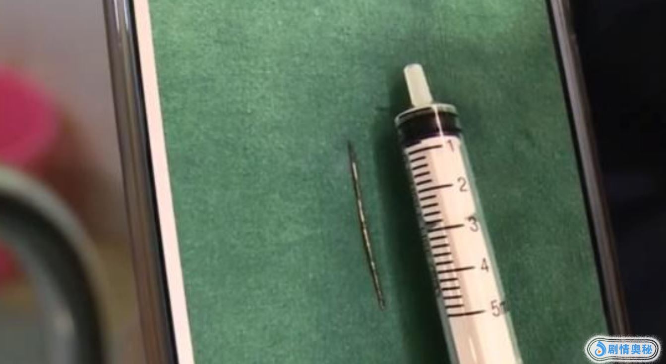 而孩子的主治医生最后也告知了记者,他们当天在检查的时候,发现孩子的肝脏部位有金属。一看,原来是根长四厘米的绣花针。医生还表示,这种情况非常危险。孩子体内扎的这跟针刚好就扎在肝脏上,稍不注意就会大出血,危及生命,医生决定立即进行手术。