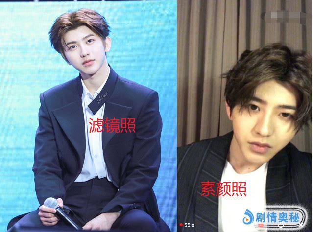 首先来看蔡徐坤的,左边是素颜照,右边是滤镜图。两者最明显的就是肤色了,蔡徐坤的真实皮肤有点偏黄,而在滤镜之下就变成了小鲜肉。不过最欣慰的就是坤坤皮肤的底子还算好的,没有痘印,毛孔也很细腻,值得点赞。