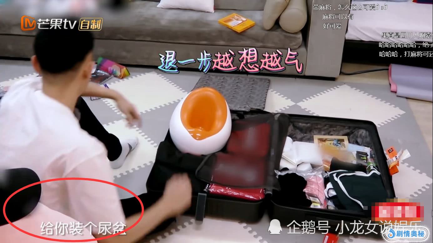 张嘉倪对买超说:她要到哪里看帅哥,这时的买超直接吃醋了,蹲坐在地上。气得不行的买超,我买你的麻将给你拿出来,张嘉倪:那我也要看帅哥。最后给张嘉倪的行李箱里面放了一个东西,有谁注意到了最后放的这个东西,竟然是一个尿盆。网友瞬间炸锅。(哈哈,太调皮了)。