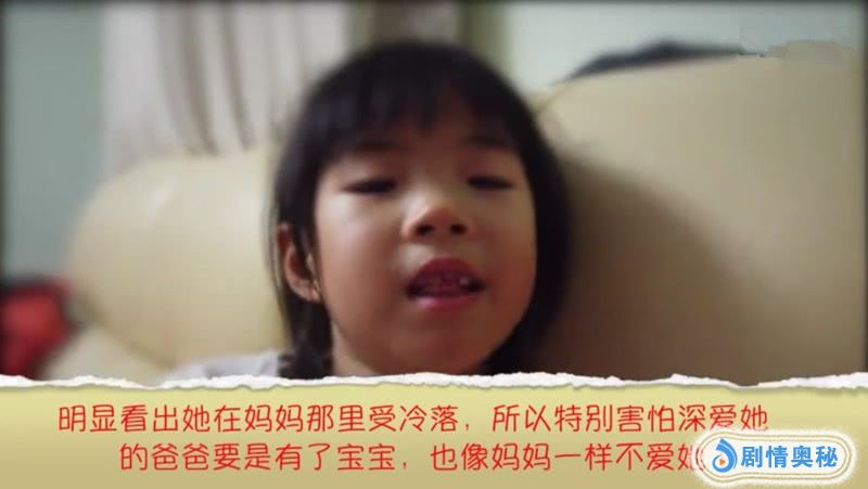 虽然孩子只有6岁,但是却给人一种很懂事,贴心的感觉。不过,从她不停的追问黄毅清戒指的事情,可以看得出来她似乎很害怕爸爸结婚。不过她却无意间透露了黄奕带来婚戒,与男友同居了的事情。