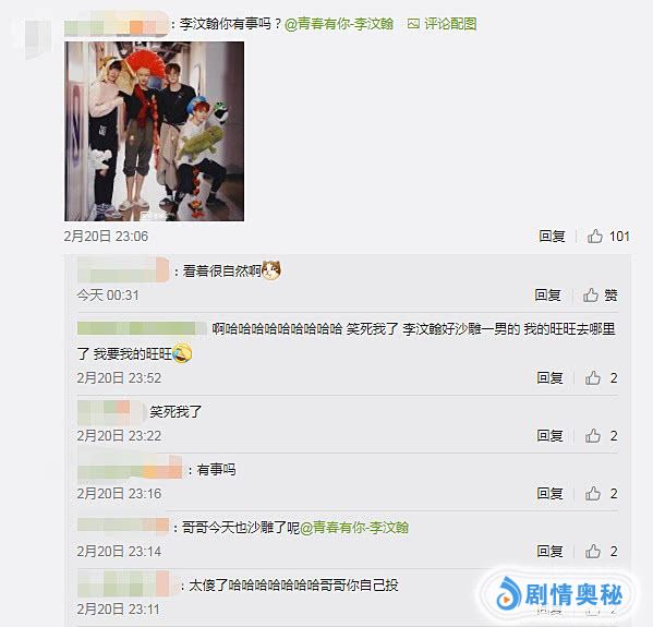 而李汶翰可以说是所有选手里,最逗的一个!只见他上身是一件简单的黑色卫衣,下身搭配的是一条很灰色的运动裤,衣摆扎进裤子里,大长腿既视感立现!最吸引眼球的还是他放在头上像扇子一样的红色头饰,与胸前绑着的红色围巾、新年挂饰颜色非常呼应。甚至有粉丝表示他的整体造型骚包又土味,还很妖艳~