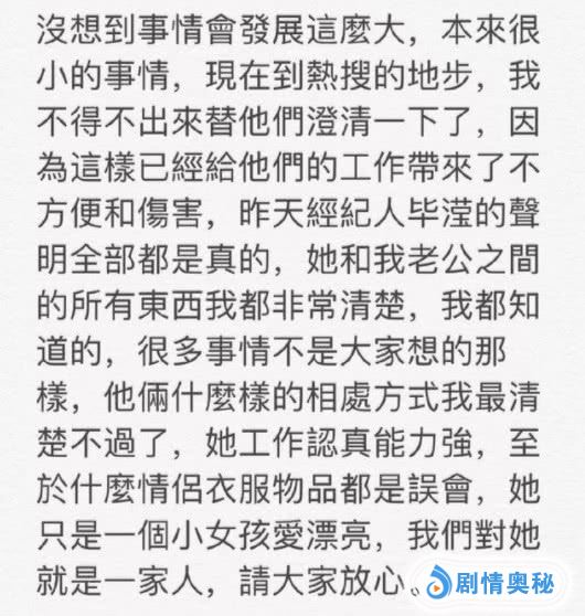 然而就在吃瓜群众觉得实锤落地的时候,洪欣和张丹峰一起出来澄清了。洪欣本人也表示,她自己很清楚张丹峰与经纪人的关系,还说毕滢跟一家人关系都很好,就是个小妹妹。网友们虽心有不甘,但也只能接受这样的结果,毕竟正主已经澄清了,再争论也没什么意义。