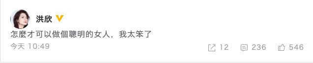只不过没想到的就是,这才刚刚过完年洪欣又发了引人猜测的微博。“怎么才能做个聪明的女人,我太笨了”,15个字原本足以让人浮想联翩,更何况是在昨晚秒删之后今早又重新发出。这一系列操作很容易让人乱想,再加上原本大家就对经纪人事件耿耿于怀。